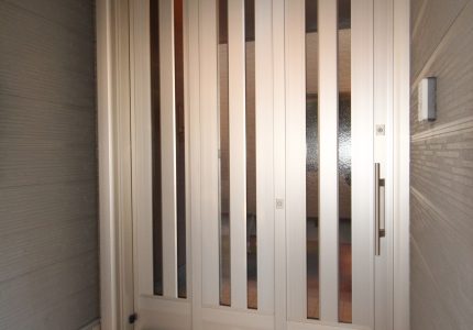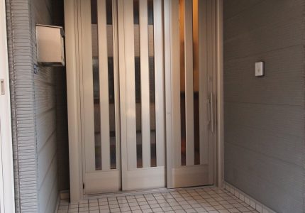 玄関から室内に爽やかな風を取り入れられるよう、YKK AP『横引き収納網戸』を取り付けさせていただきました。