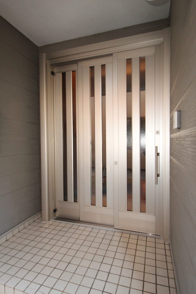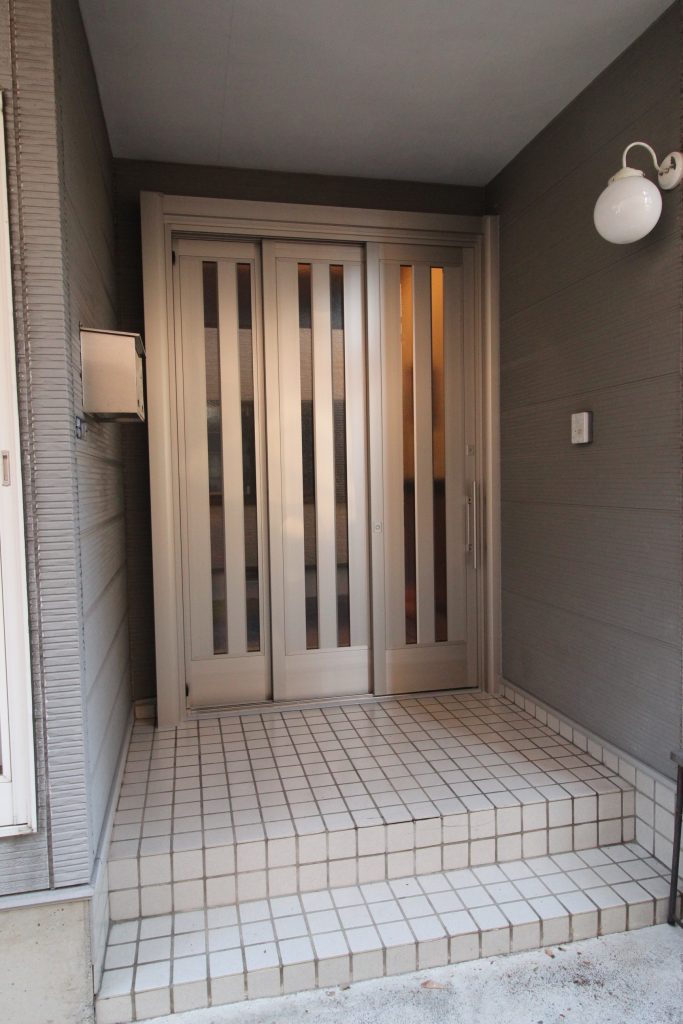 玄関ドアから引戸に変え、冬場は暖かく夏場は風を入れられ、有効開口をできる限り広く取りたいとご依頼いただきました。