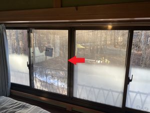物をぶつけてしまい窓ガラスにヒビが入ってしまったので、修理のご依頼をいただきました。