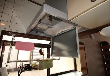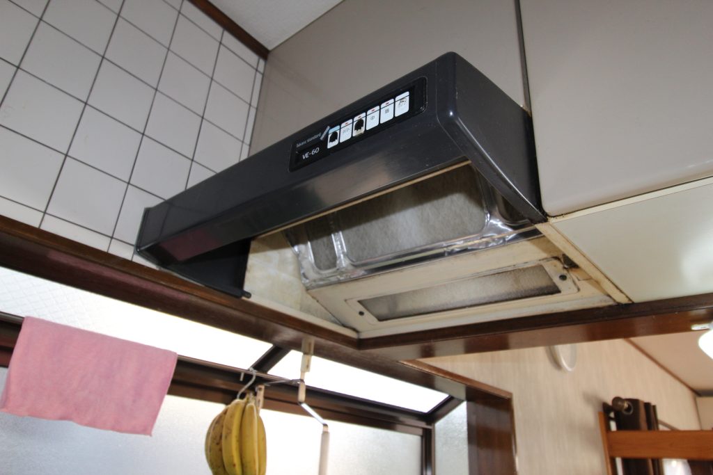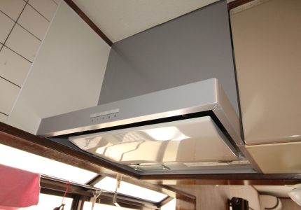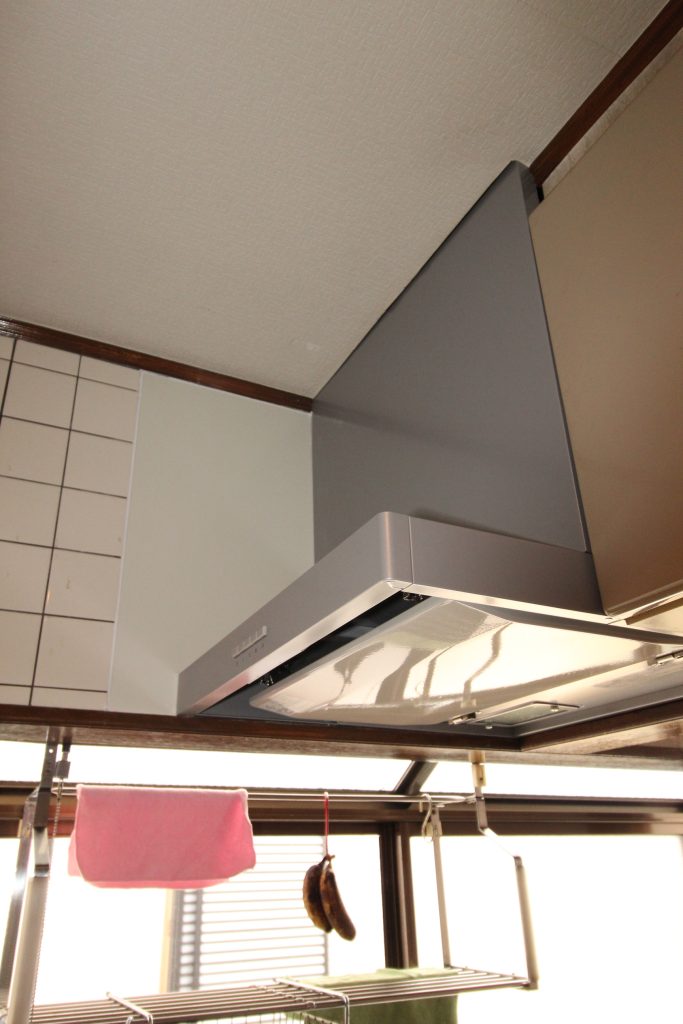 レンジフードが古く汚れていて、吸い込みも悪いので新しくしたいとご依頼いただきました。