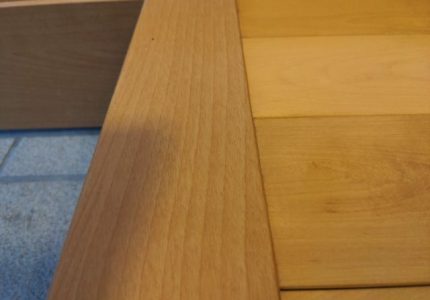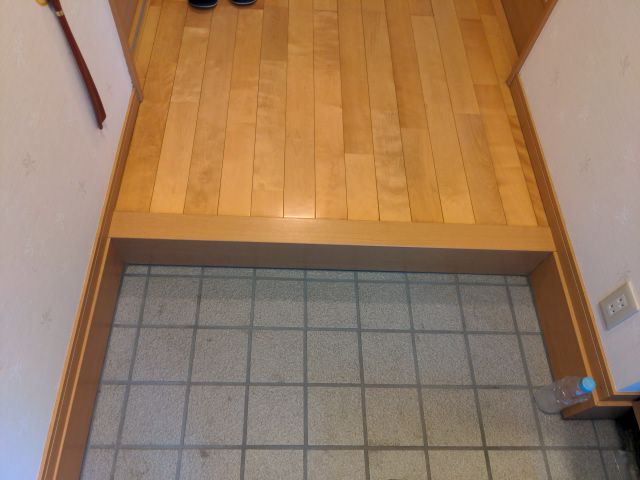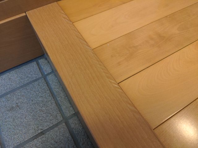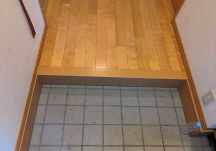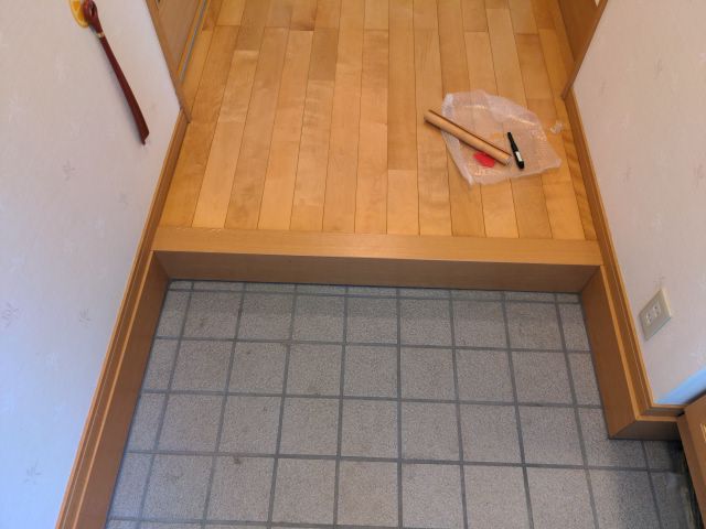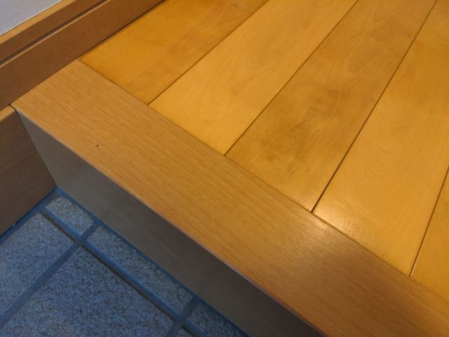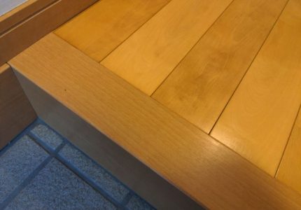 玄関の上がり框のラミネートがシワになってしまったので、直してほしいとご依頼いただきました。