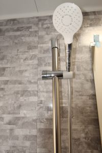 頭上から降り注ぐシャワーは想像以上に爽快な浴び心地で、前出のあるアーチ状で手すりとしても使いやすい【コンフォートシャワー】は、高さと角度も自由自在に変えられます。