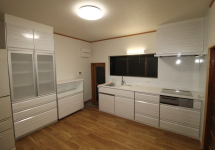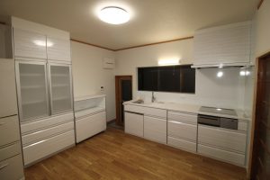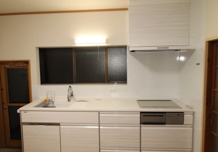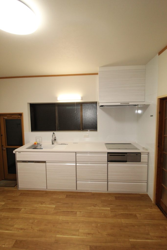 キッチンも古くなってきているので新しい物へ変えて、壁や床なども張り替えてキレイにしたいとご依頼いただきました。