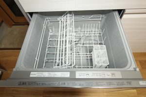 そして手洗いよりも省エネになり高温で除菌できる《食器洗い乾燥機》は、シンク下に配置され水垂れせずお皿をセットでき強い主婦の味方。