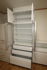 キャビネットの引出しが多層構造になっており、たっぷり収納でき取り出しやすく、調理の効率も上がります!