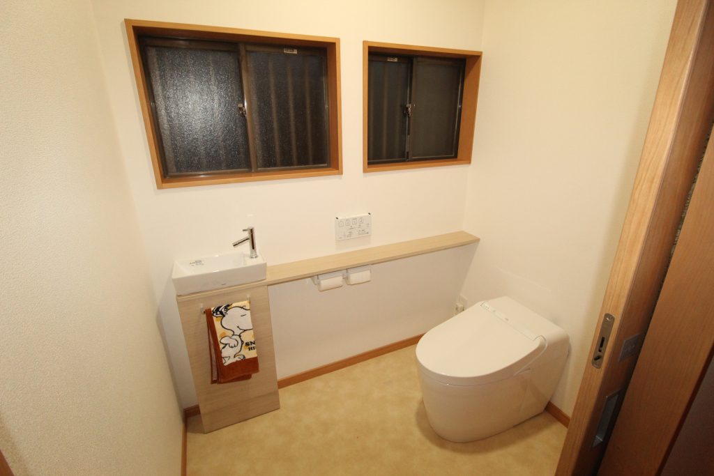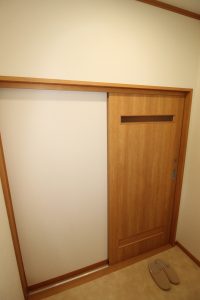 トイレの出入り口は、YKK AP『ラフォレスタ 片引き戸』を取付けさせていただきました。