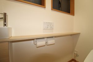 キャビネット付なので、トイレットペーパーや掃除用具などをスッキリ収納できます。