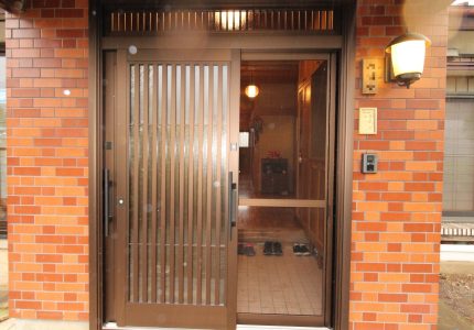 玄関が古くなっていて、鍵も壊れてしまっているので新しくしたいとご依頼いただきました。