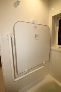 入浴の際、置き場に困る風呂フタ…L型ハンドバーに風呂フタフックの機能を付け壁面を有効活用しました!