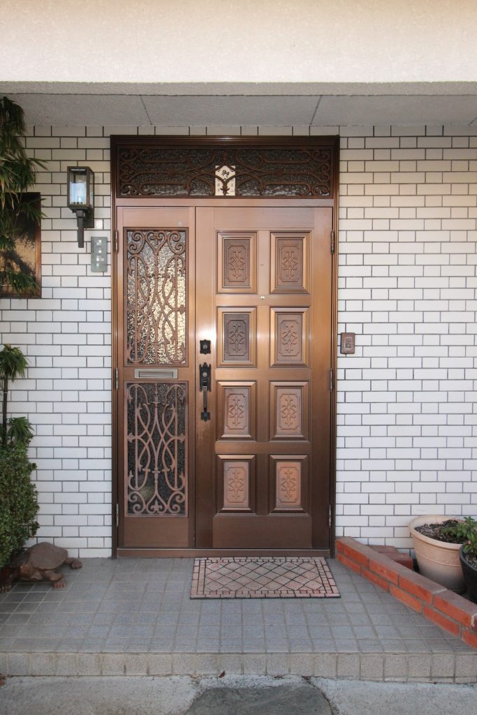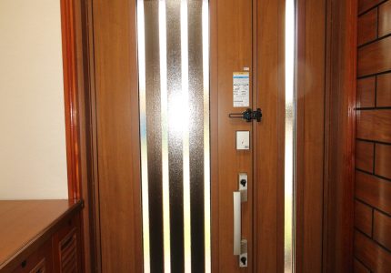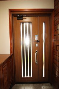 玄関を新しくし、鍵はボタンで押して開閉できるものにしたいとご依頼いただきました。