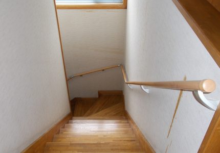 階段に手すりがついていないので、手すりを設置したいとご依頼いただきました。