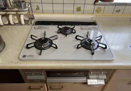 コンロも古く点火もしにくくなってきてしまっているので、新しい物へ変えたいとご依頼いただきました。