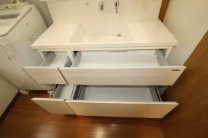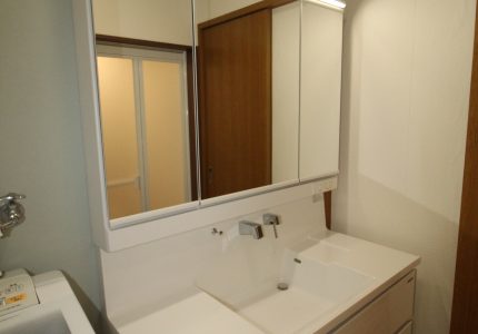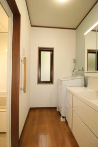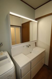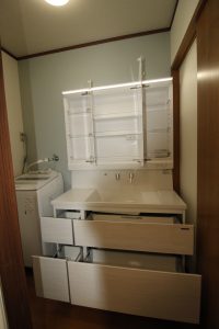 浴室と一緒に脱衣場もリフォームし、洗面化粧台を新しくしたいとご依頼いただきました。