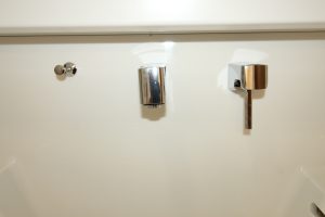 ボウルは広く底面が平らなので、洗面器を置いたり水ハネを気にせず手洗い洗濯などができ、また濡らしたくないものと濡れたものと使い分けできる【2wayカウンター】があり便利!