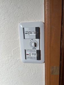 スイッチは、Panasonic『換気扇用タイマースイッチ』を取付け、タイマーツマミで換気運転時間を調節できます。