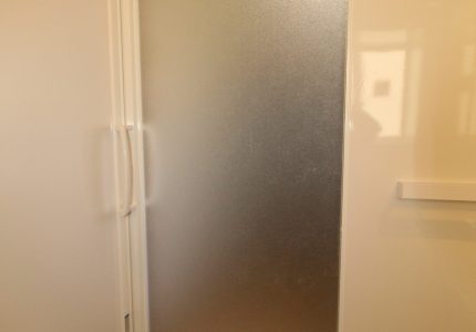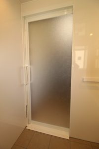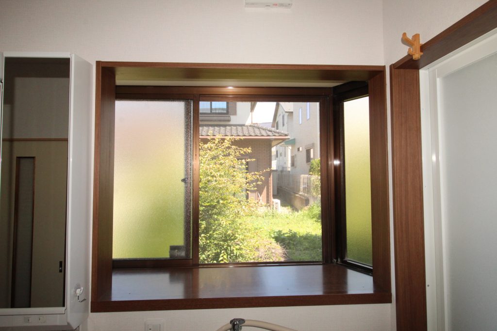 脱衣場の窓は、既存の窓・出窓の空間はそのままに、壁を増設して洗面化粧台とトールキャビネットを設置できるようにし、YKK AP『かんたんマドリモ 内窓 プラマードU』を取付けさせていただきました。