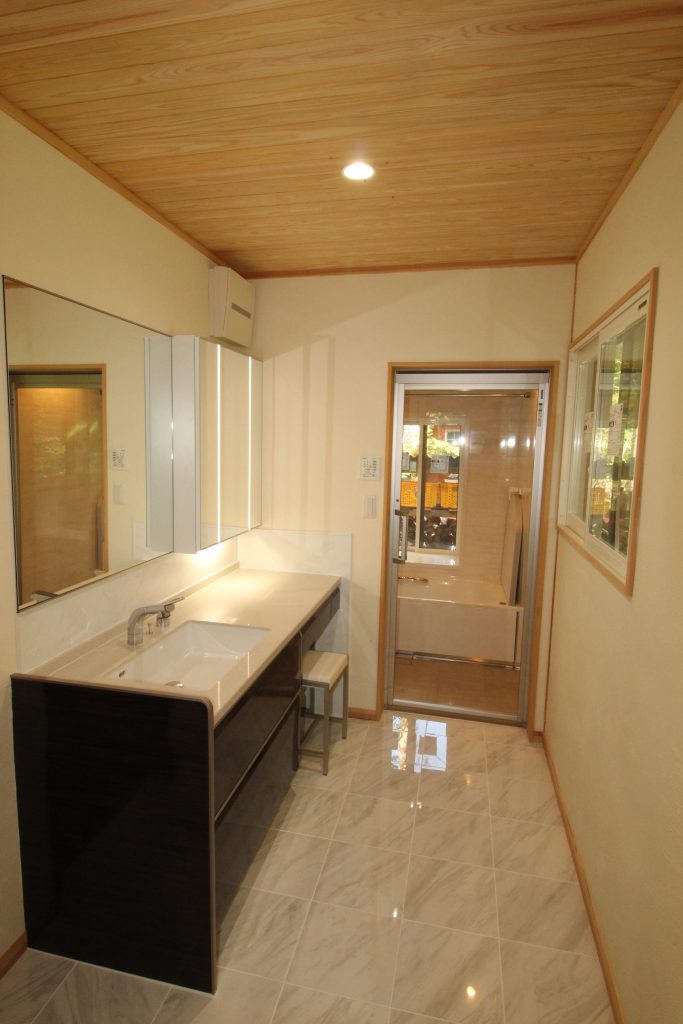 脱衣場の床はタイル調、壁は漆喰に変えたいとご依頼いただきました。