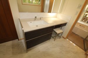 洗面化粧台は、タカラスタンダード『エリーナ(片寄せボウルプラン)』を取付けさせていただきました。