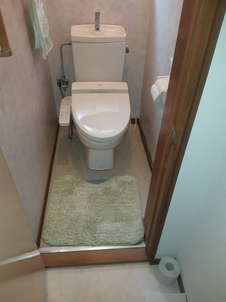 トイレ自体も古くなり、床や壁もクロスが浮いて剥がれてきてしまっている所もあるので、キレイにしたいとご依頼いただきました。