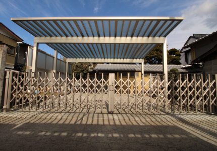 カーポートのYKK AP『エフルージュ ツイン50』と門扉の四国化成『リフティングアコーHG』を施工させていただきました。
