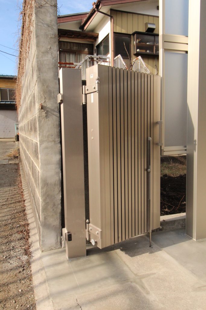 今までチェーンでしたが、門扉に変えることで防犯性などにも有効的です。