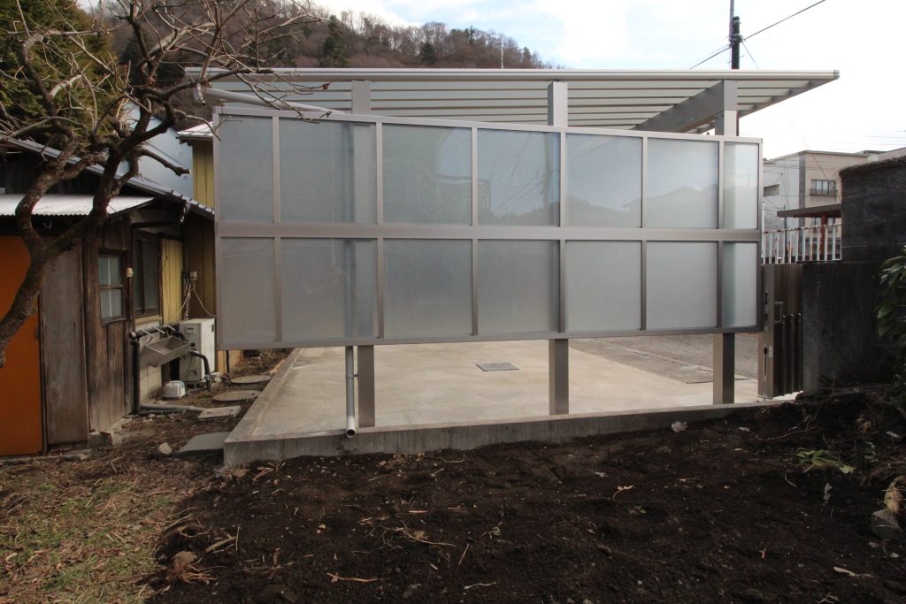 サイドにも同様の「熱線遮断ポリカーボネート板」のパネルを張り、側面からの吹き込む雨風・ホコリの侵入を防ぎ、車を美しく保ちます。
