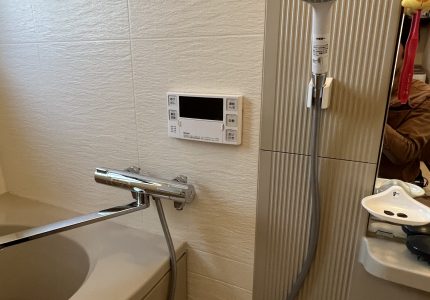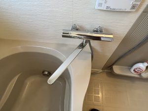 浴室水栓は、TOTO『壁付サーモスタット混合水栓』と交換させていただきました。