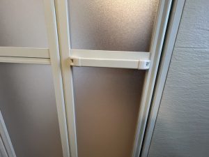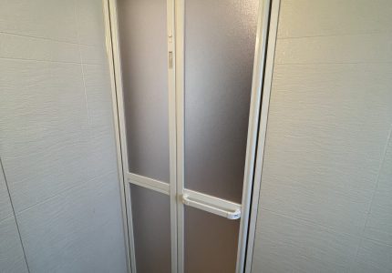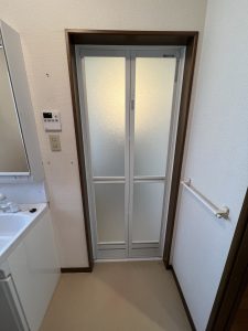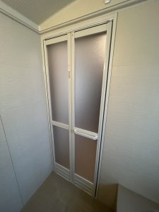 浴室ドアは、YKK AP『かんたんドアリモ 浴室ドア(折戸タイプ)』を「四方アタッチメント工法」で施工させていただきました。