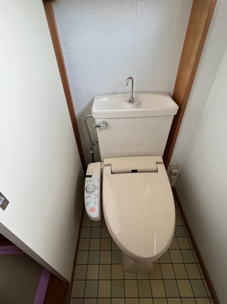 壁のクロスやクッションフロアも貼り替えさせていただき、明るく清潔感のあるトイレに仕上がりました!