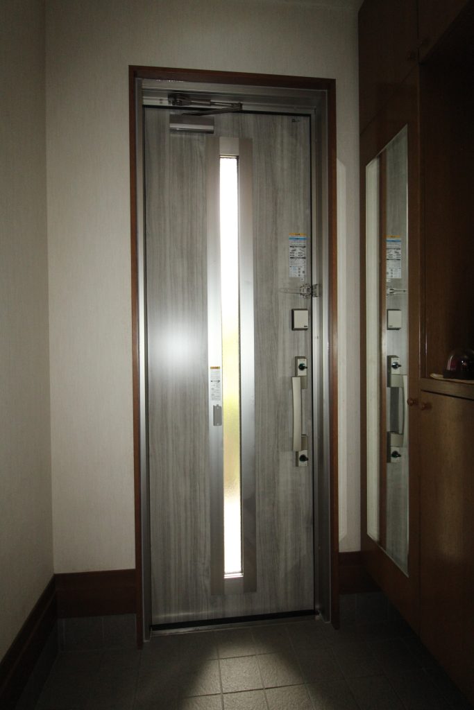 ドアや窓は閉めた状態でも熱の出入りが多い場所なので、断熱素材と構造なので熱の出入りを抑え一年中快適な玄関ドアになりました。