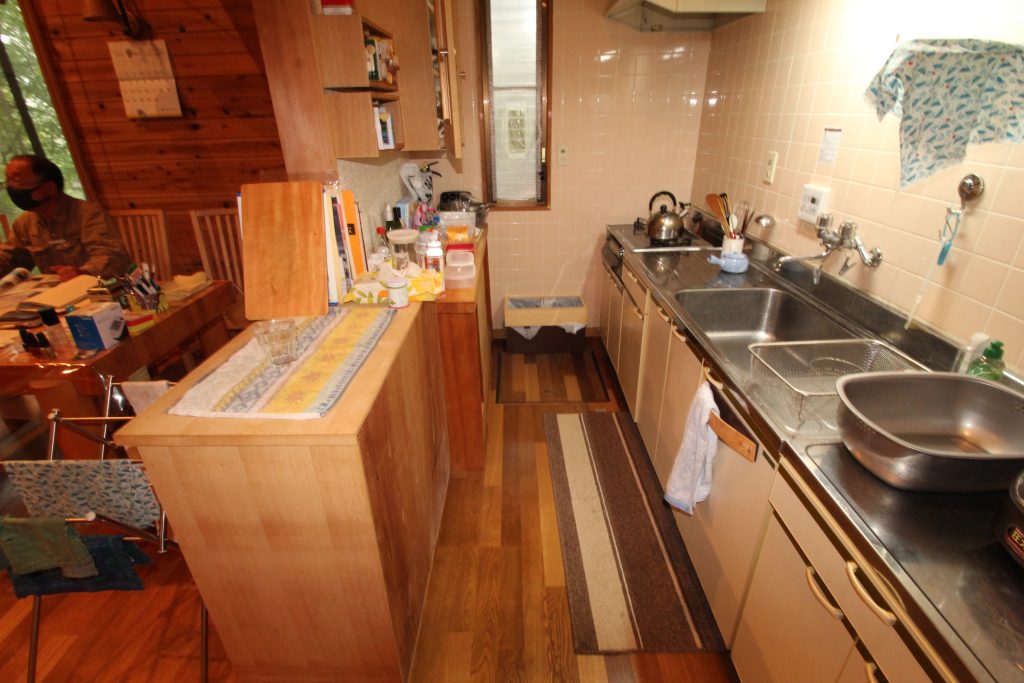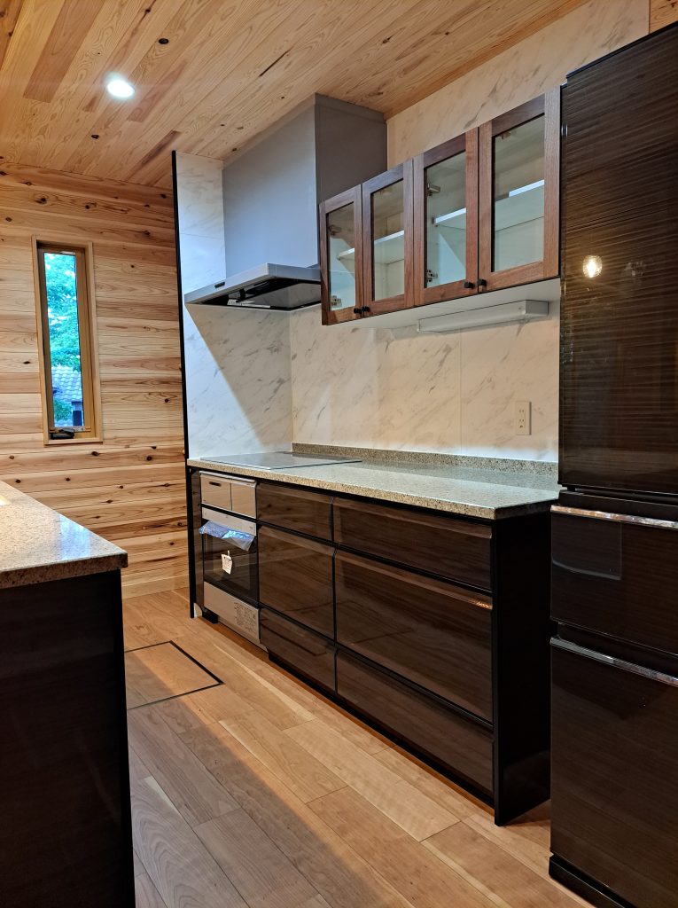壁や床もフローリングに変え木のぬくもりが感じられ、スペースを最大限に活かし使う人に寄り添うキッチンへ。