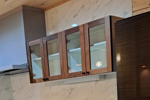 吊り戸棚は、ウッドワン『クリアガラス扉』を設置しました。