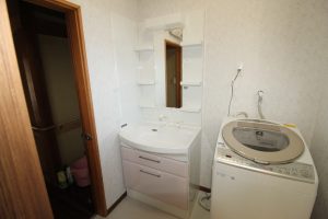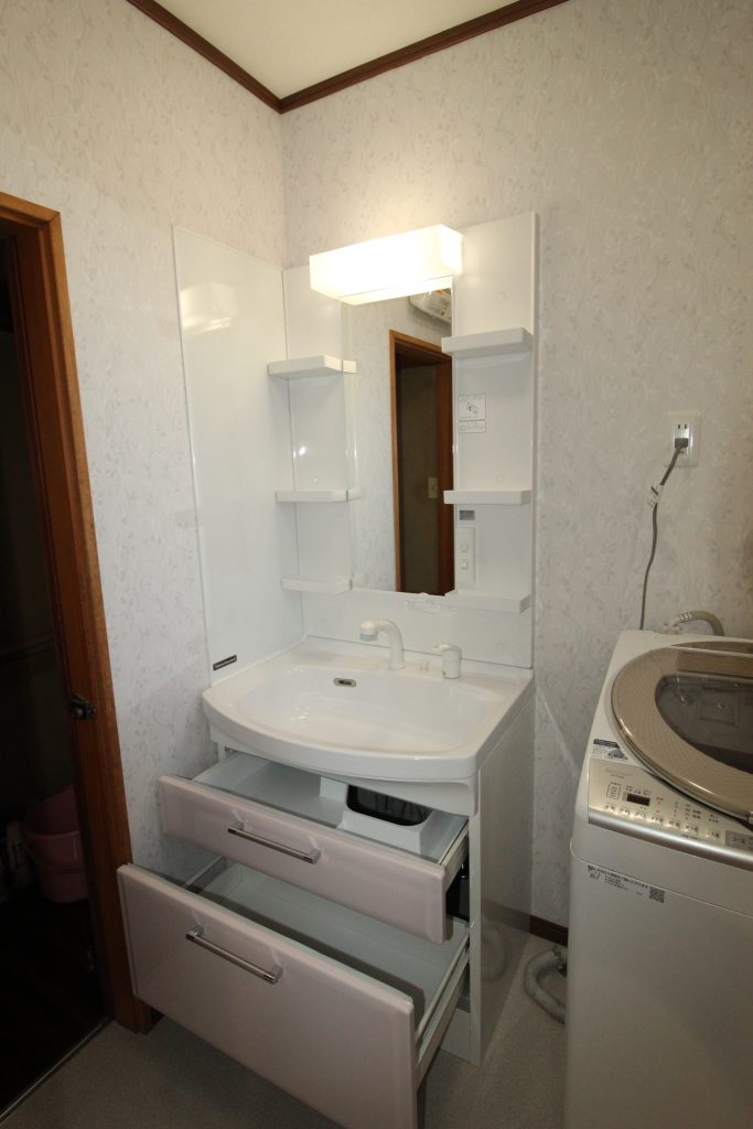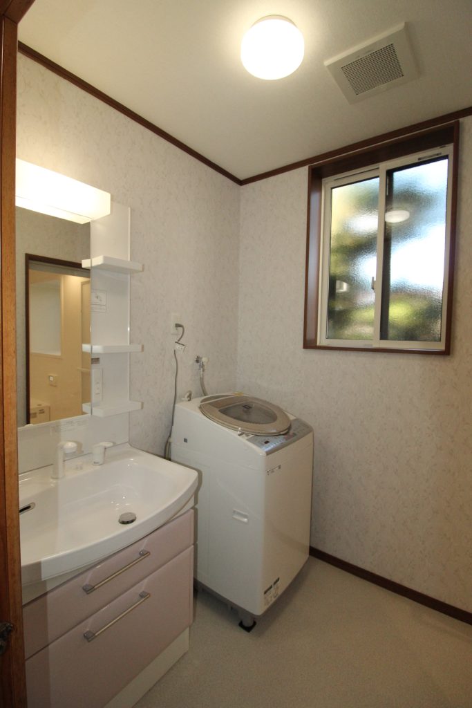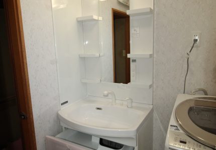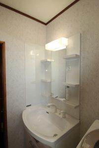 壁のクロスや床のクッションフロアを張替え、キレイで明るく快適な脱衣場になりました。