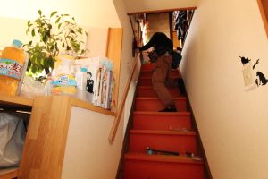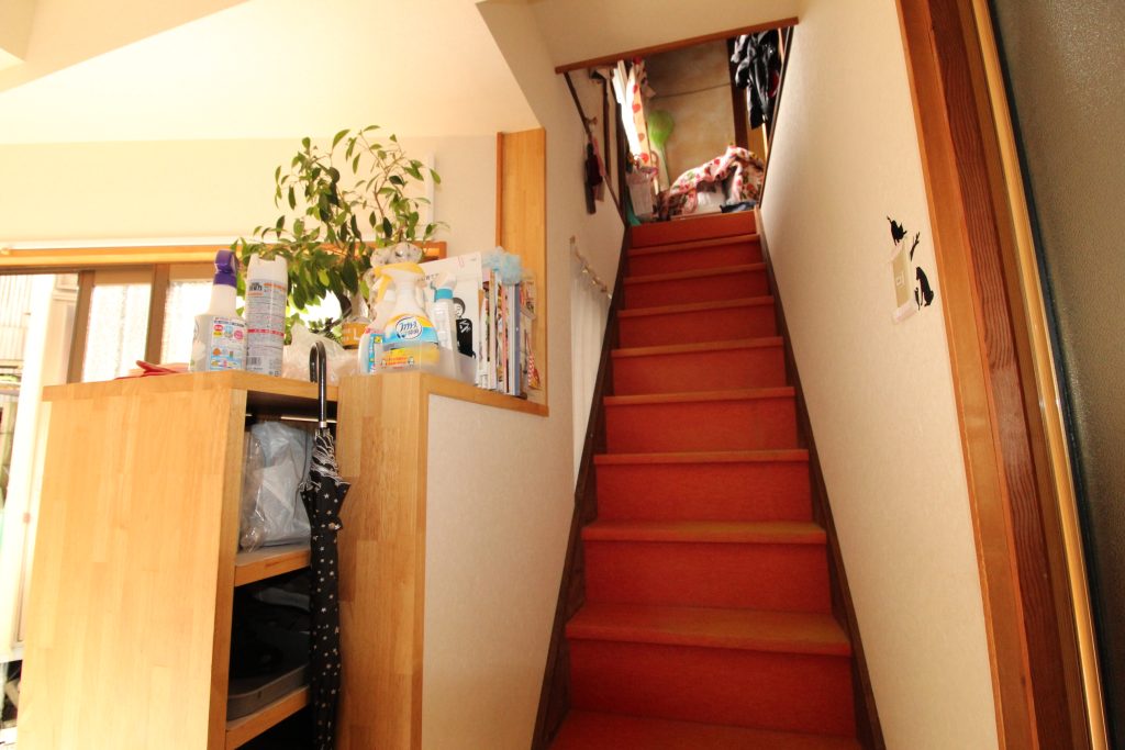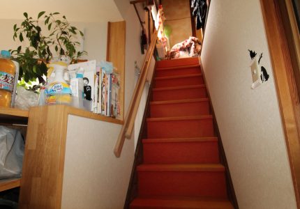 階段に手すりがついていないので、手すりを取付けて安全性を高めたいとご依頼いただきました。
