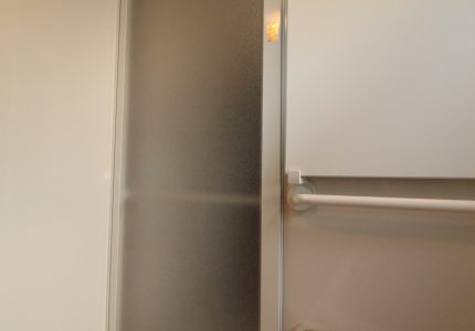 老後の事を考えて【安心ハンドバー】を取付け、浴室内の立ち座り・移動動作をサポート。