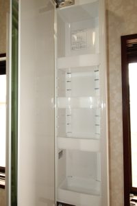 キャビネットのすみずみまで水まわりに最適な「高品位ホーロー」なので、お手入れカンタンで丈夫、いつまでもキレイで長く使える洗面化粧台です!