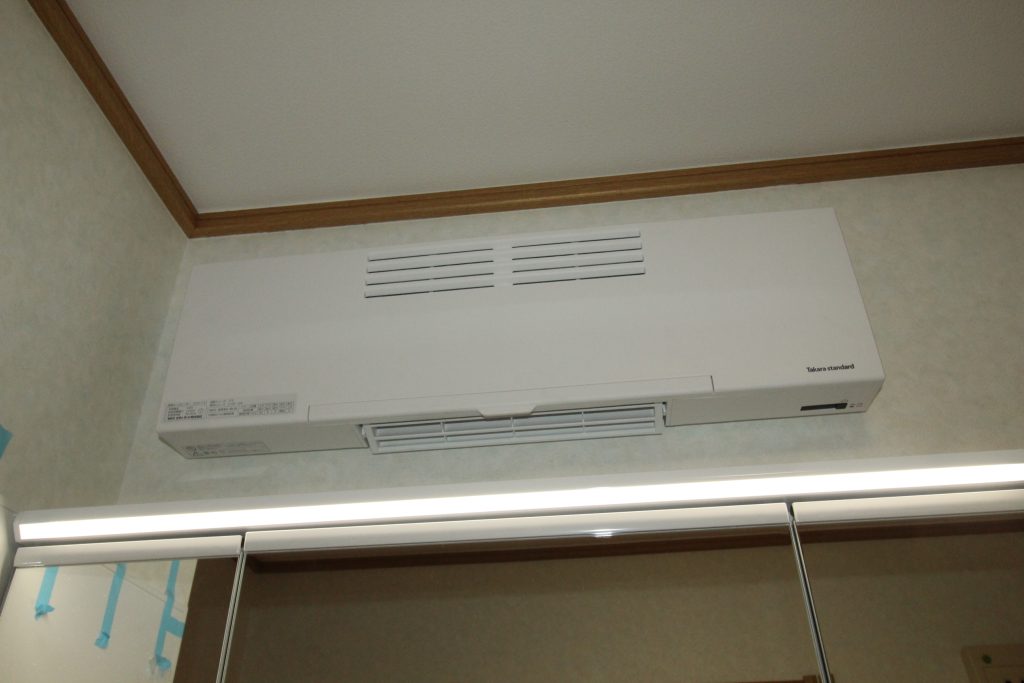 洗面化粧台上に、タカラスタンダード『洗面ルームヒーター』を取付けさせていただきました。