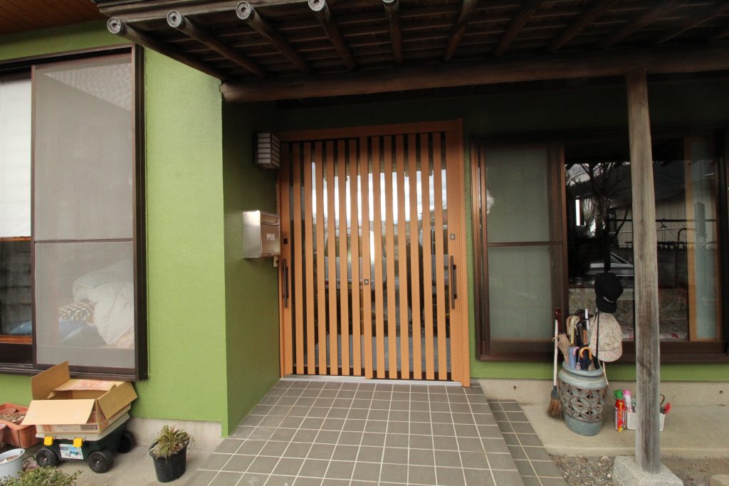 玄関引戸が古くなってきているので、新しい玄関へ変えたいとご依頼いただきました。