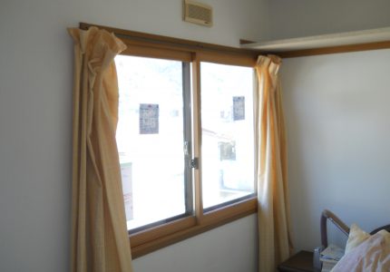 ・カーテンレールふかし枠で施工し、壁付けのレールも持ち出しています。10窓の施工で半日の工事でした。