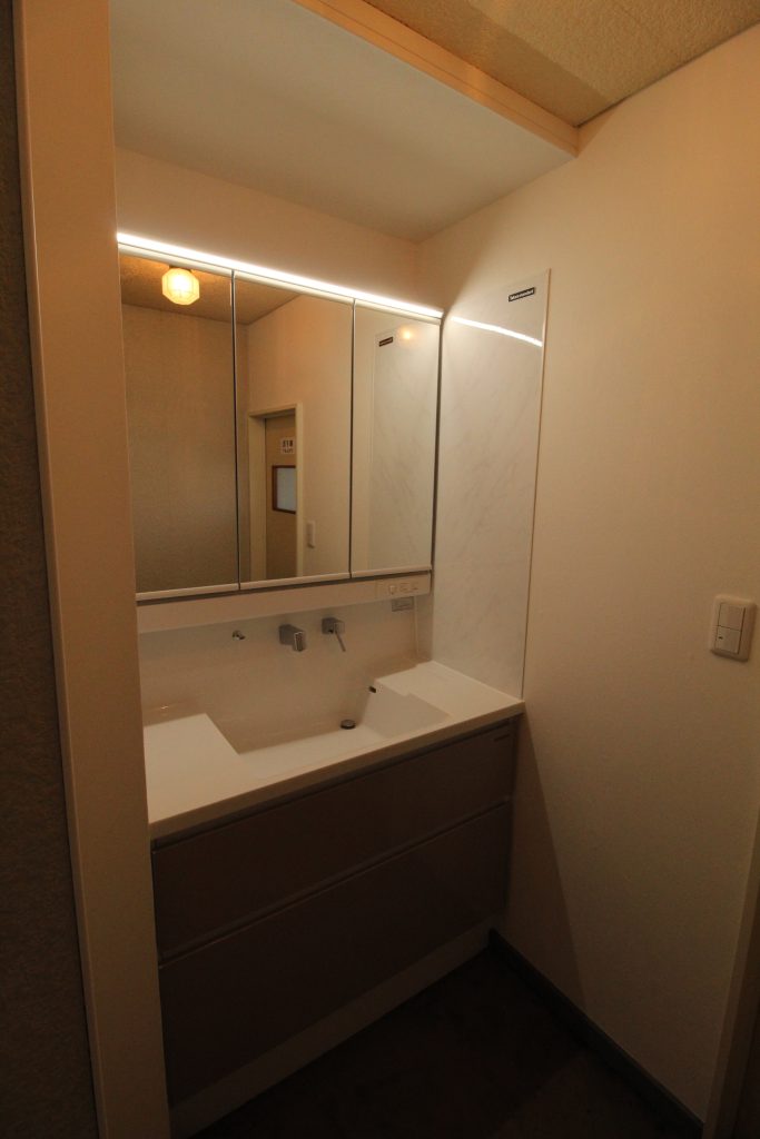 ミラーは「3面鏡[ワイドLED]」を採用し、薄型ですっきりシンプルなデザイン。