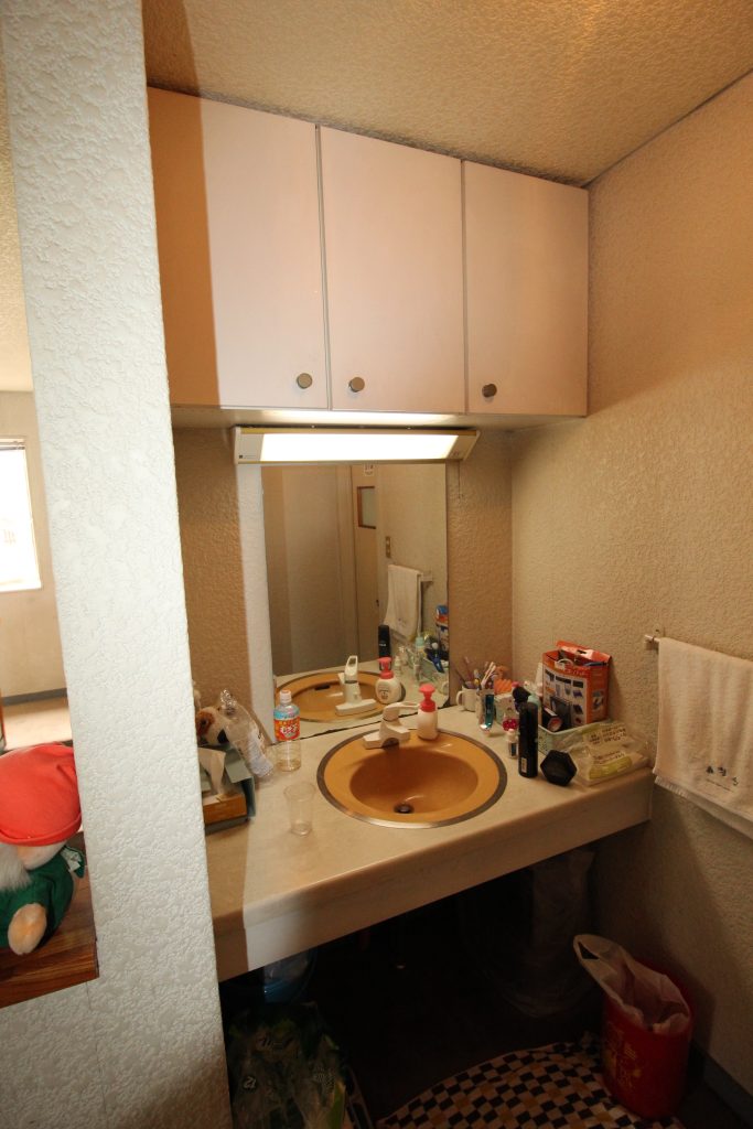 洗面台も古くなり収納場所もないので、物がたっぷり入りお手入れ簡単な洗面化粧台に変えたいとご依頼いただきました。