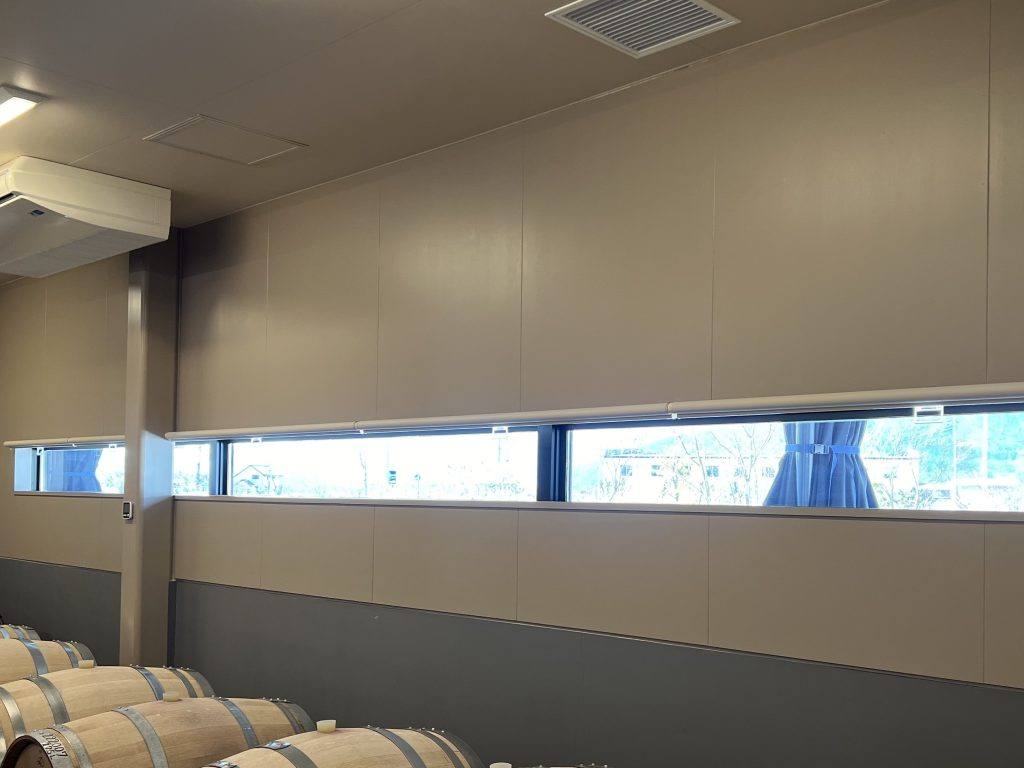 ロールスクリーンをあげる時は、10~20mm下に引いてから、手を離すと自動的に巻き上がり、完全収納の前にワンクッション。スクリーンの巻き上げがとてもソフトです。