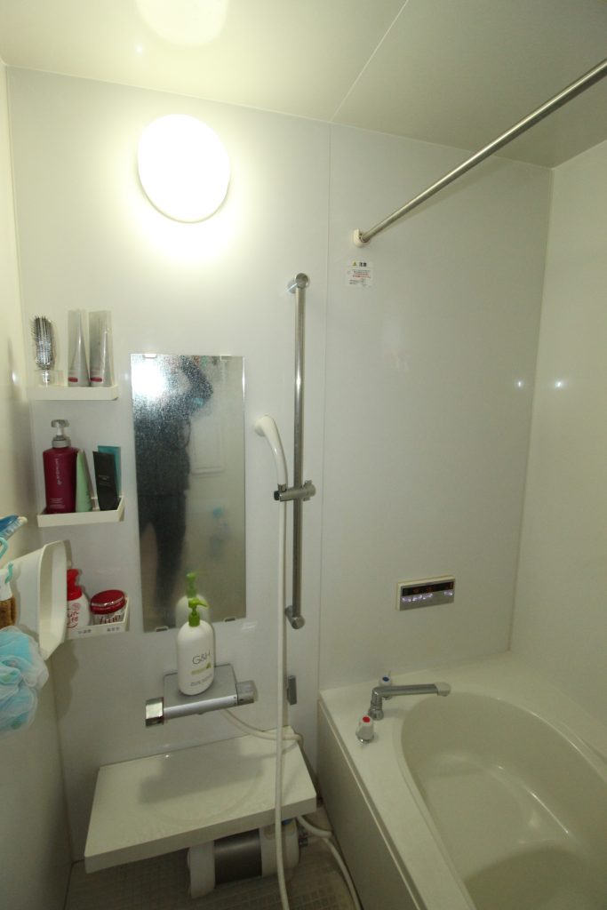 浴室の汚れがなかなか落ちなくて気になるので、お掃除カンタンであたたかい浴室にしたいとご依頼いただきました。