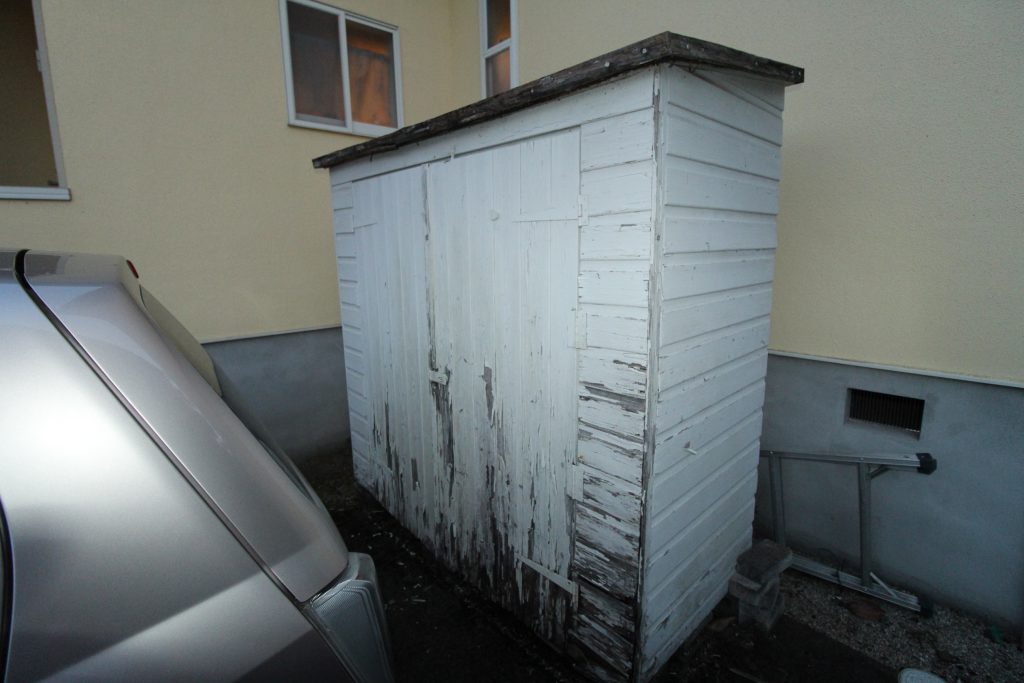 物置が木製なので劣化しボロボロになってしまっているので、新しい物へ変えたいとご依頼いただきました。