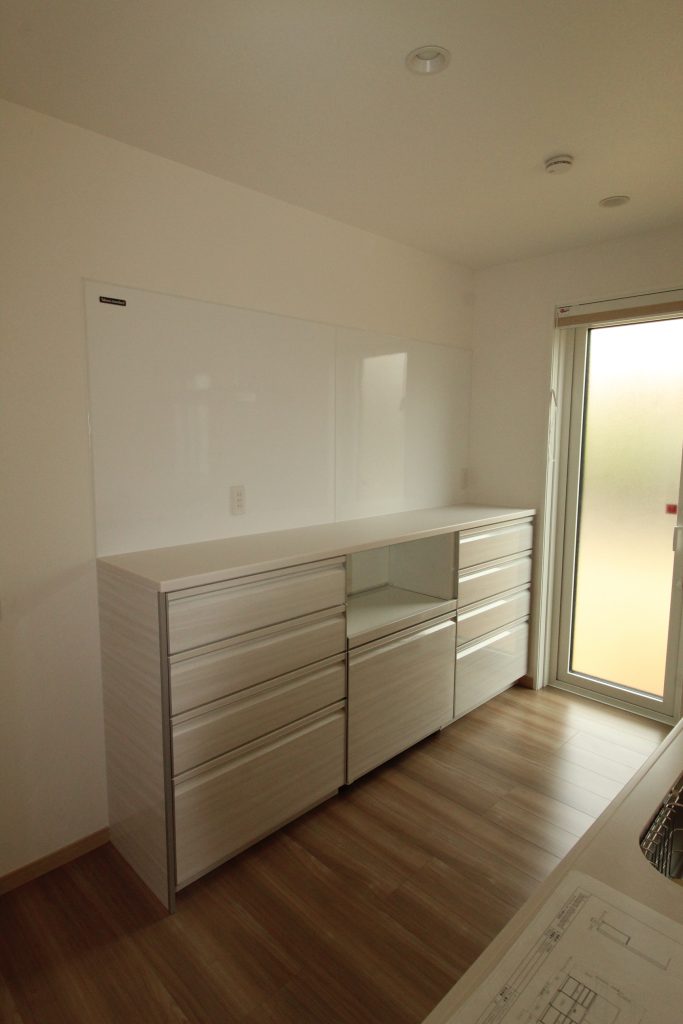 新築した家のキッチンの後ろに、カウンターユニットを設置したいとご依頼いただきました。