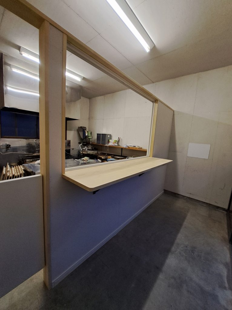 部屋に間仕切りを設置し、調理場と分けたいとご依頼いただきました。