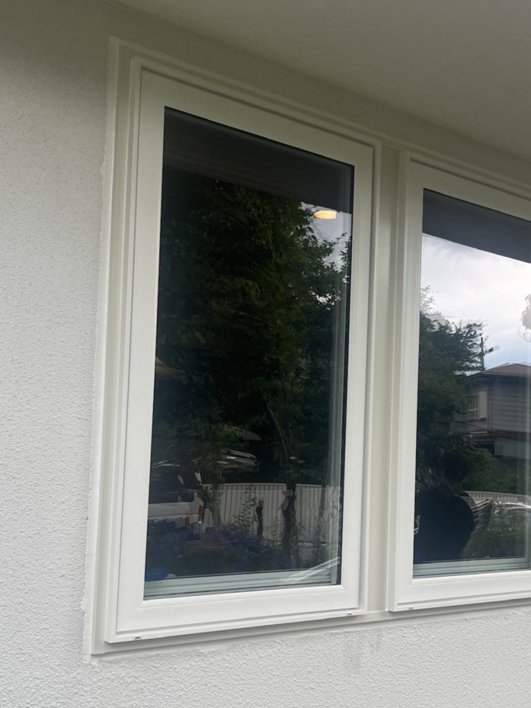 上げ下げ窓の動きが悪いので交換したいとご依頼いただき、YKK AP『APW 330』の『たてすべり出し窓(オペレーターハンドル仕様)』を施工させていただきました。