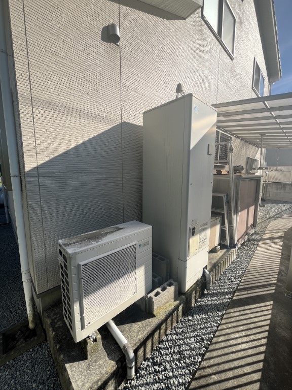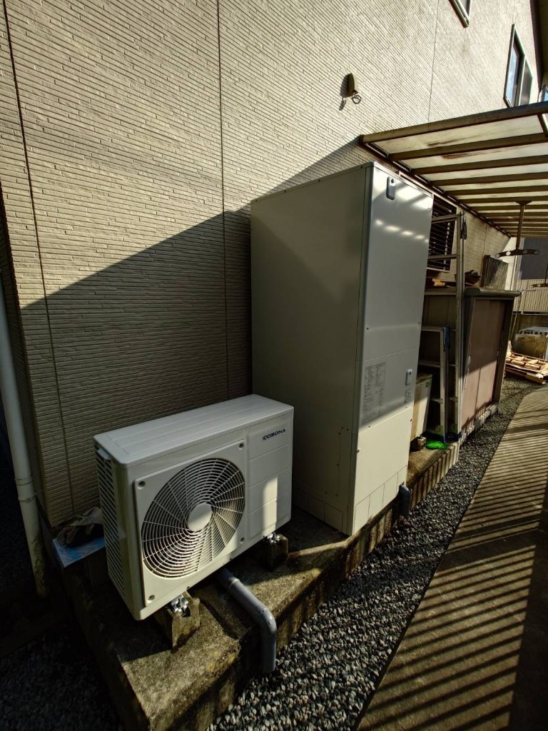 エコキュートは、ヒートポンプで大気の熱をくみ上げてお湯を沸かすシステムです。