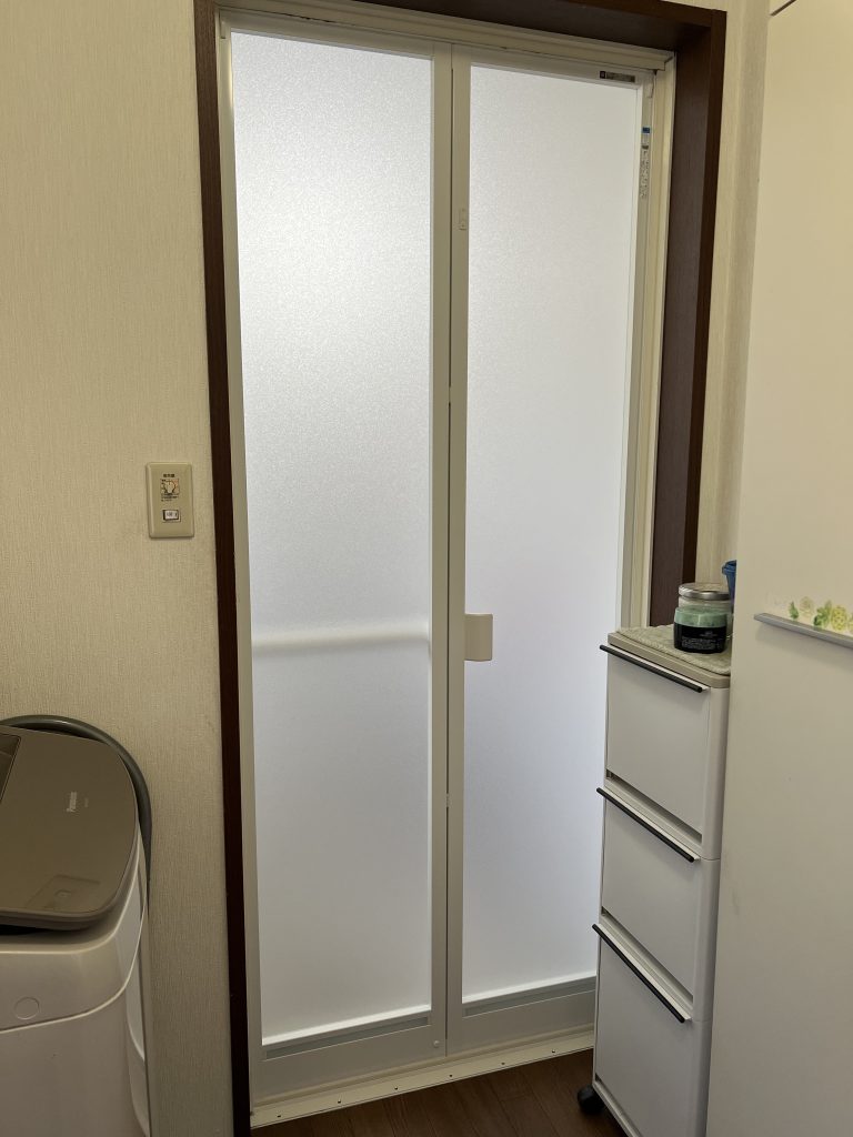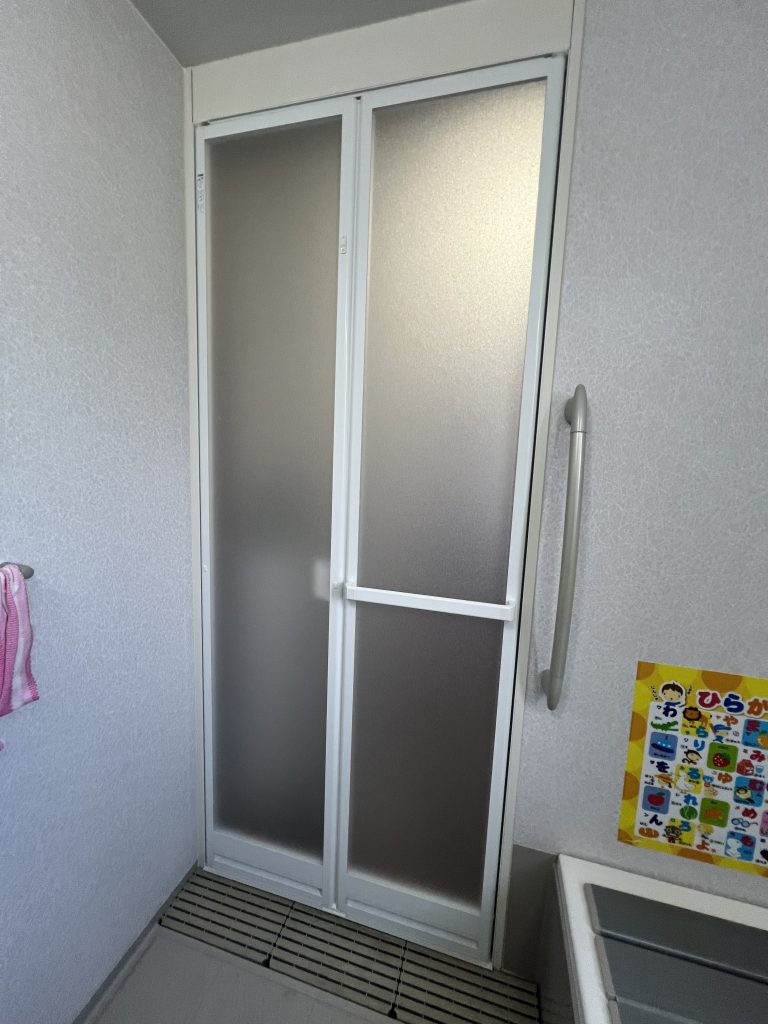浴室折戸が古くなってきて、動きが悪いので交換したいとご依頼いただきました。
