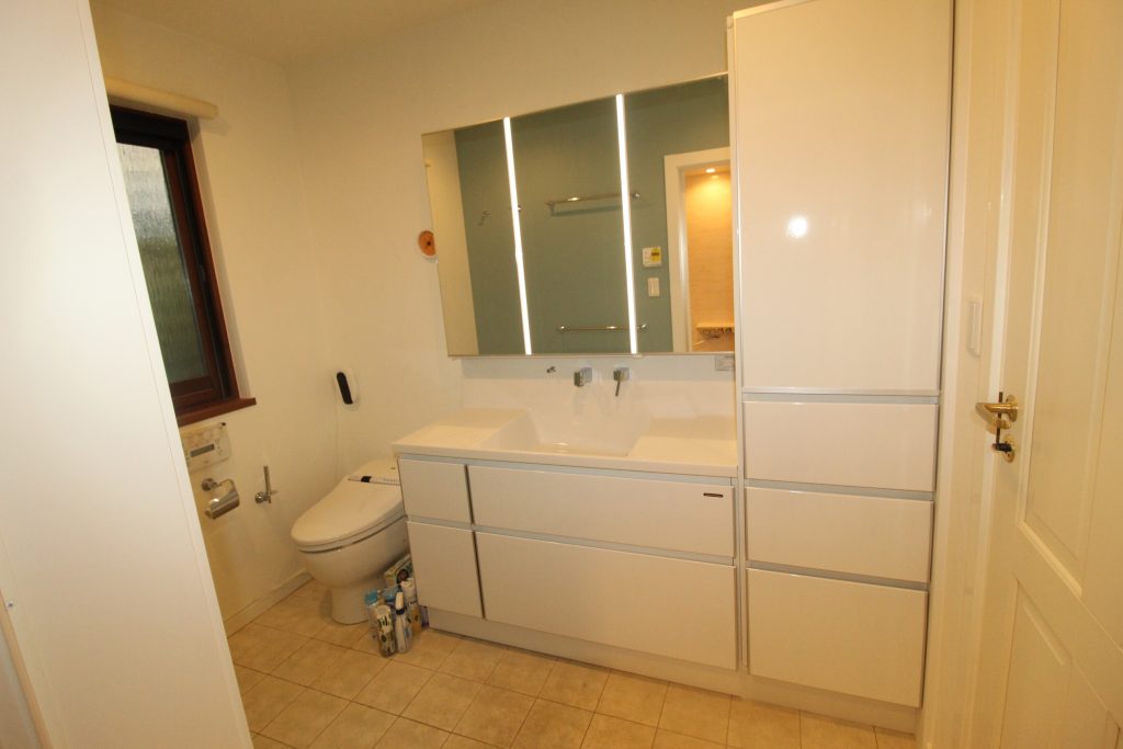 洗面化粧台横には『トールキャビネット』を設置し、さらに収納力がアップ↑↑。